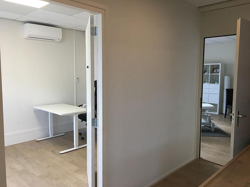 Het pand is in begin 2017 helemaal opnieuw vorm gegeven. De ruimten zijn zeer licht en huiselijk en daarom erg prettig om in te werken. Het pand is ingericht met twee behandelkamers, een wachtkamer met keukentje en een toilet met douche. Eén behandelkamer (22m2) is voorzien van een luxe hoog-laag tafel met kruk, een bureau, stoelen en kasten. De andere behandelkamer (17m2) is voorzien van stoelen, bureau en een kast. Deze is zo geschikt voor gesprekken te voeren (bijvoorbeeld psychologie, coaching, diëtiek). De inrichting uitbreiden met een hoog-laag bank is mogelijk.
